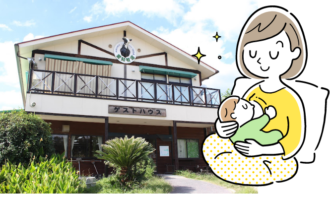 愛知牧場では、小さなお子様連れのご家族が安心して過ごせるよう、授乳室を完備しております。清潔で快適な空間をご用意し、授乳やおむつ替えにご利用いただけます。場所は第1駐車場近くの「ゲストハウス」にあり、どなたでも自由にご利用可能です。牧場での楽しいひとときを、赤ちゃんとご一緒に快適にお過ごしください。